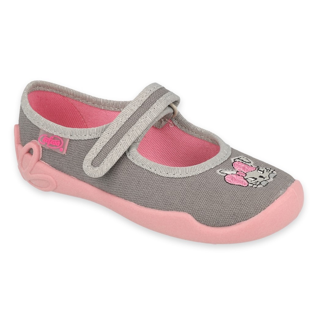 Os calçados infantis Befado 114X479 nas cores rosa e cinza são uma excelente opção para pré-escolares que precisam de calçados confortáveis e funcionais. Partes superiores confortáveis confeccionadas em tecidos de algodão respiráveis garantem higiene e conforto nas atividades do dia a dia. Graças ao ajuste cuidadoso, o calçado é perfeito para pés mais estreitos e pequenos, ao mesmo tempo que os reduz visualmente.