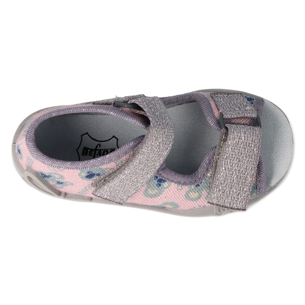 Conforto e segurança enquanto brinca no jardim de infância - é assim que você pode descrever o Befado 342p050. Os sapatos foram projetados para as necessidades de pés pequenos: um salto rígido e lados estáveis mantêm a posição correta do pé, e os dedos descobertos fornecem ventilação adicional. A parte superior é feita de tecido de algodão arejado, o que aumenta o conforto do uso, e a inserção de couro cuida de higiene e conforto. Um simples sistema de fixação de velcro permite que a criança use e combine o calçado de forma independente.
