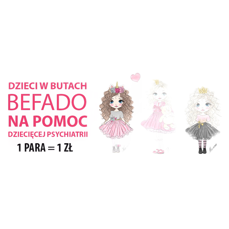 Os calçados infantis Befado Blanka em azul marinho e prata são a escolha perfeita para as princesinhas que querem aliar conforto a um look fashion. Parte de uma coleção limitada destinada a apoiar a psiquiatria infantil, cada calçado adquirido contribui para ajudar crianças necessitadas - um par vale tanto quanto 1 PLN doado a esta nobre causa.