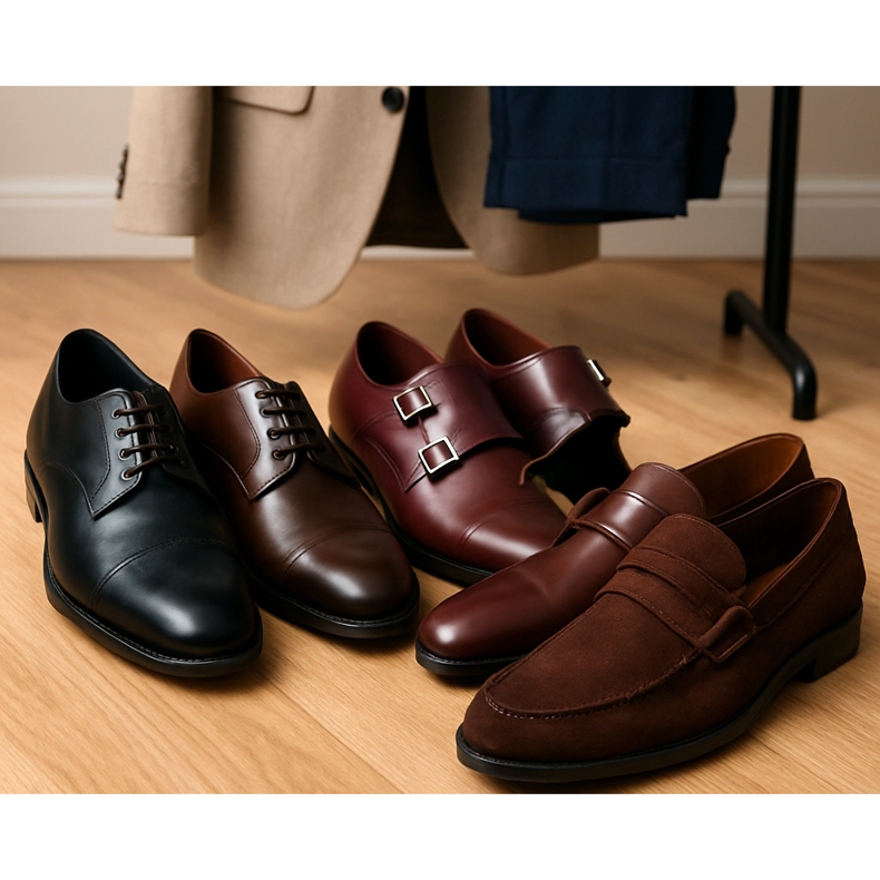 Sapatos com fivela em vez de atacadores são uma alternativa elegante aos modelos tradicionais. Single Monk (uma fivela) é mais formal, Double Monk (duas fivelas) adiciona personalidade. Perfeito para pessoas que valorizam a originalidade dentro de um estilo profissional.