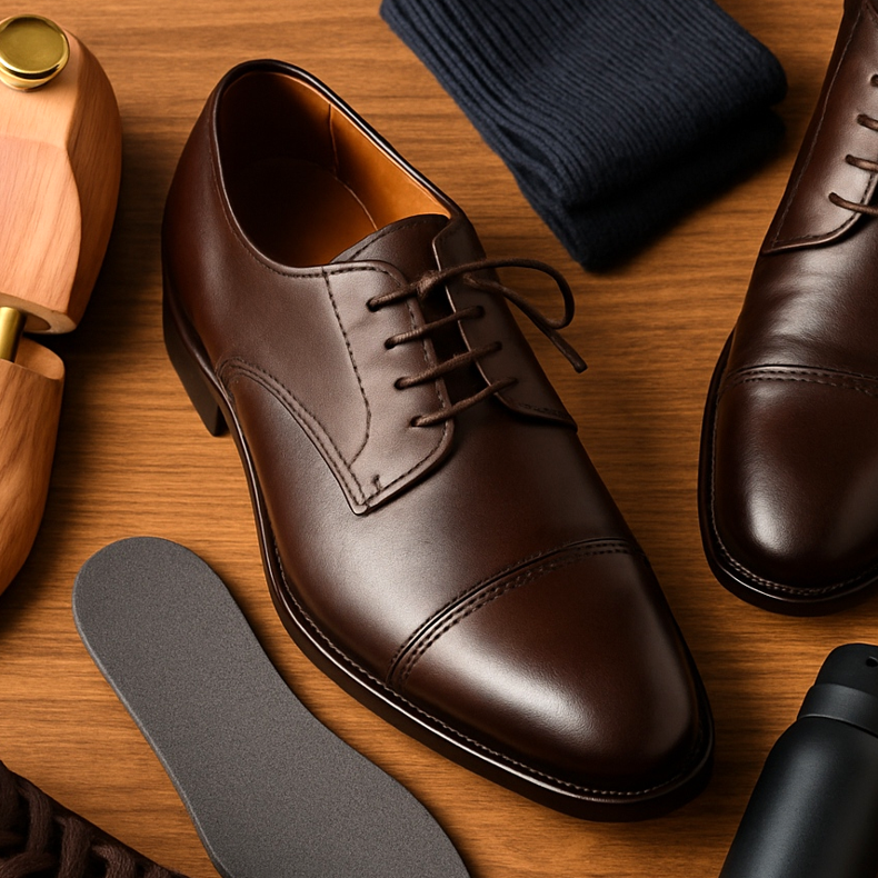 A sola de couro parece elegante, mas é menos prática em tempo chuvoso. A sola de borracha oferece melhor aderência e é mais durável. Um bom compromisso são sapatos com sola de couro e biqueira e salto de borracha.
