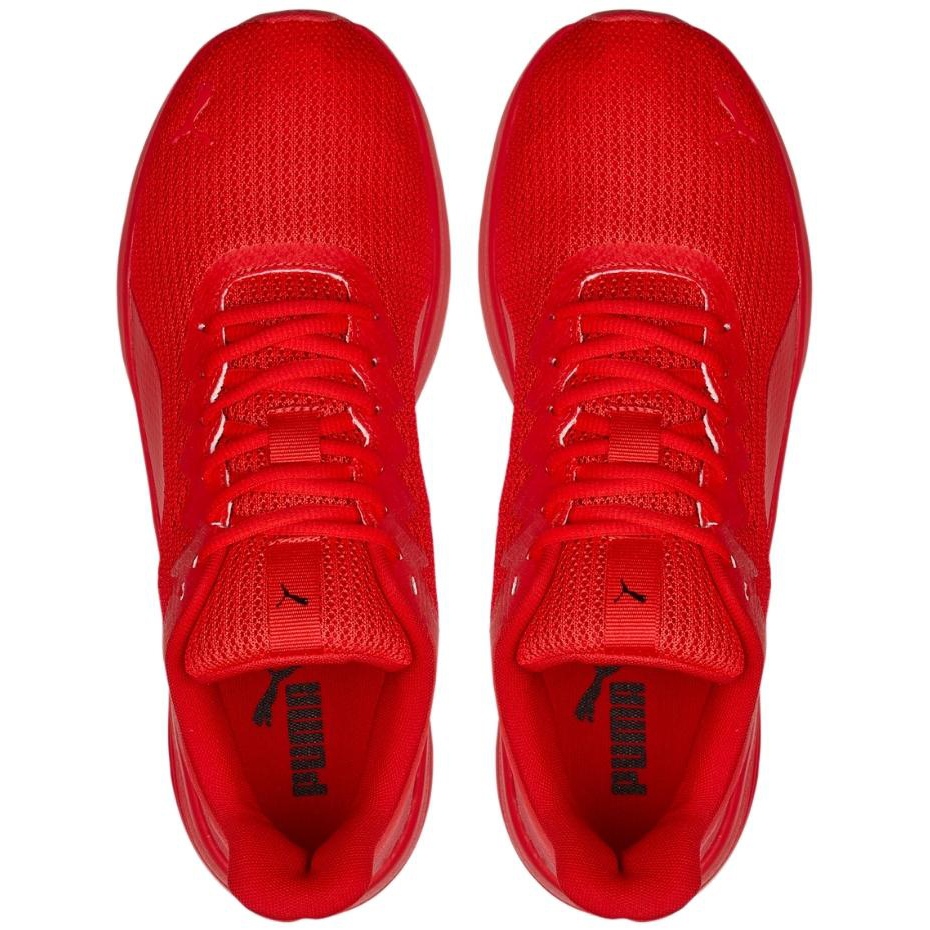 Sapatos modernos e leves de corrida e treinamento da marca Puma - Modelo Transporte Moderno em uma versão vermelha expressiva. Projetados para treinamento diário de superfície dura, eles combinam respirabilidade e conforto com retenção de pé sólido.