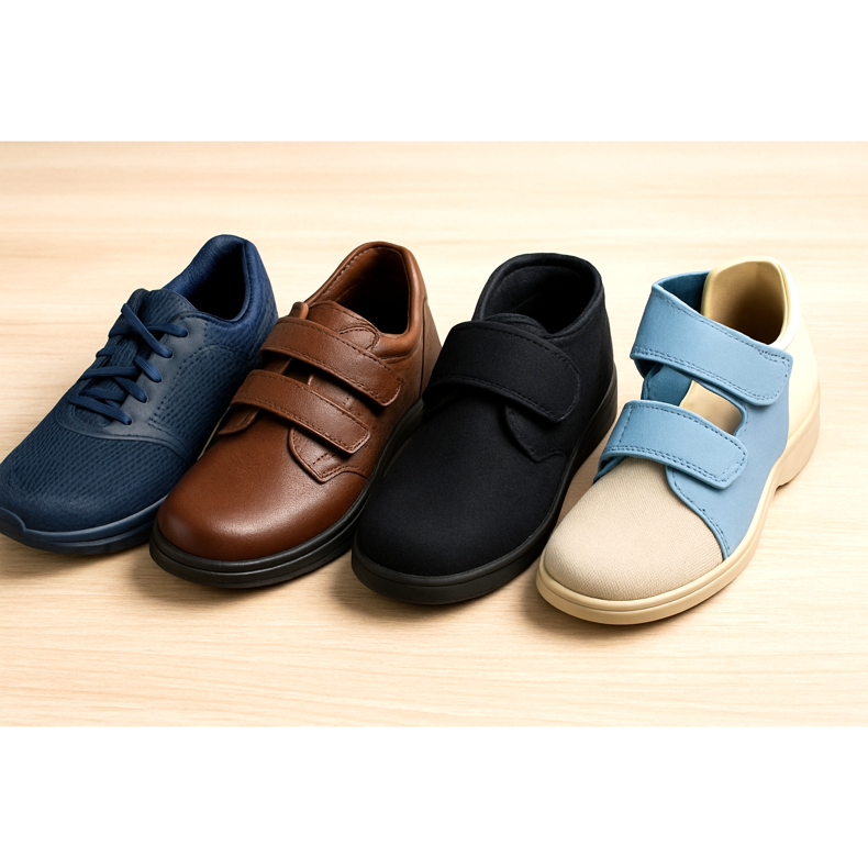 Calçado concebido para pessoas em reabilitação. Muitas vezes possuem reforços especiais, fechos ajustáveis e solas com distribuição de pressão que protegem a área operada. Podem ser uma solução temporária durante a recuperação ou um elemento permanente do seu guarda-roupa, dependendo do tipo de cirurgia.