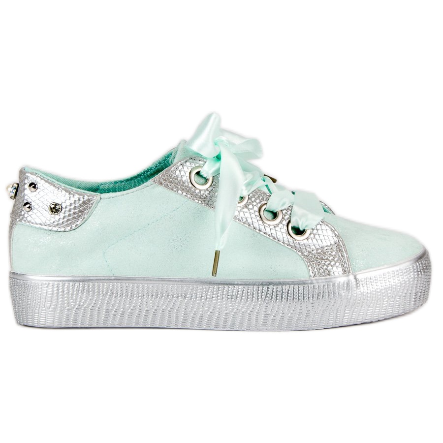 Apresentamos Calçado Esportivo Lace-Up na moda cor verde do renomado fabricante Bestelle. Estes elegantes tênis femininos são uma excelente escolha para mulheres que valorizam conforto e design exclusivo. Feitos de material têxtil de alta qualidade com elegantes inserções de couro ecológico prateado, estes sapatos combinam um visual moderno com funcionalidade.