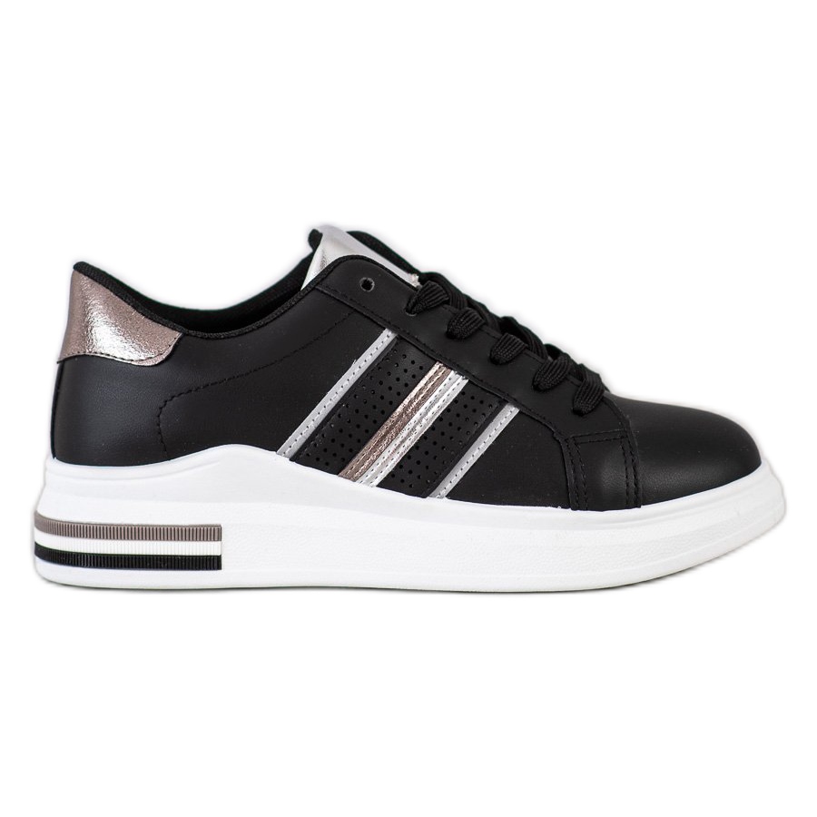 Detalhes: SHELOVET Calçados esportivos casuais pretos prata