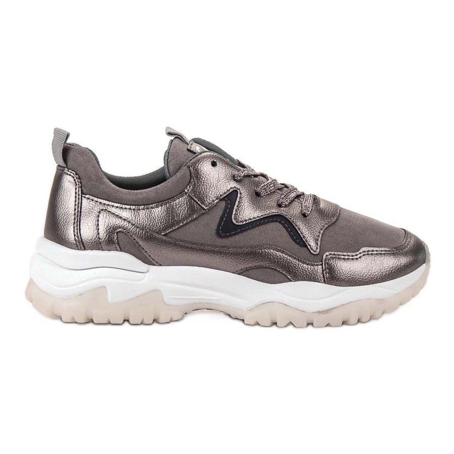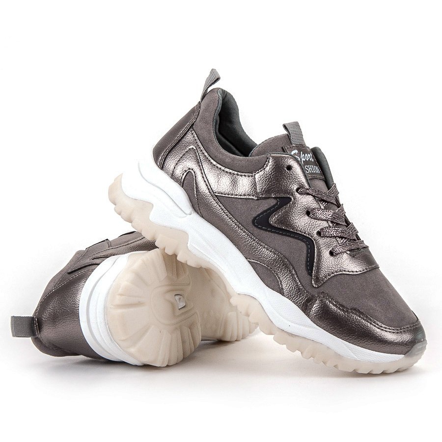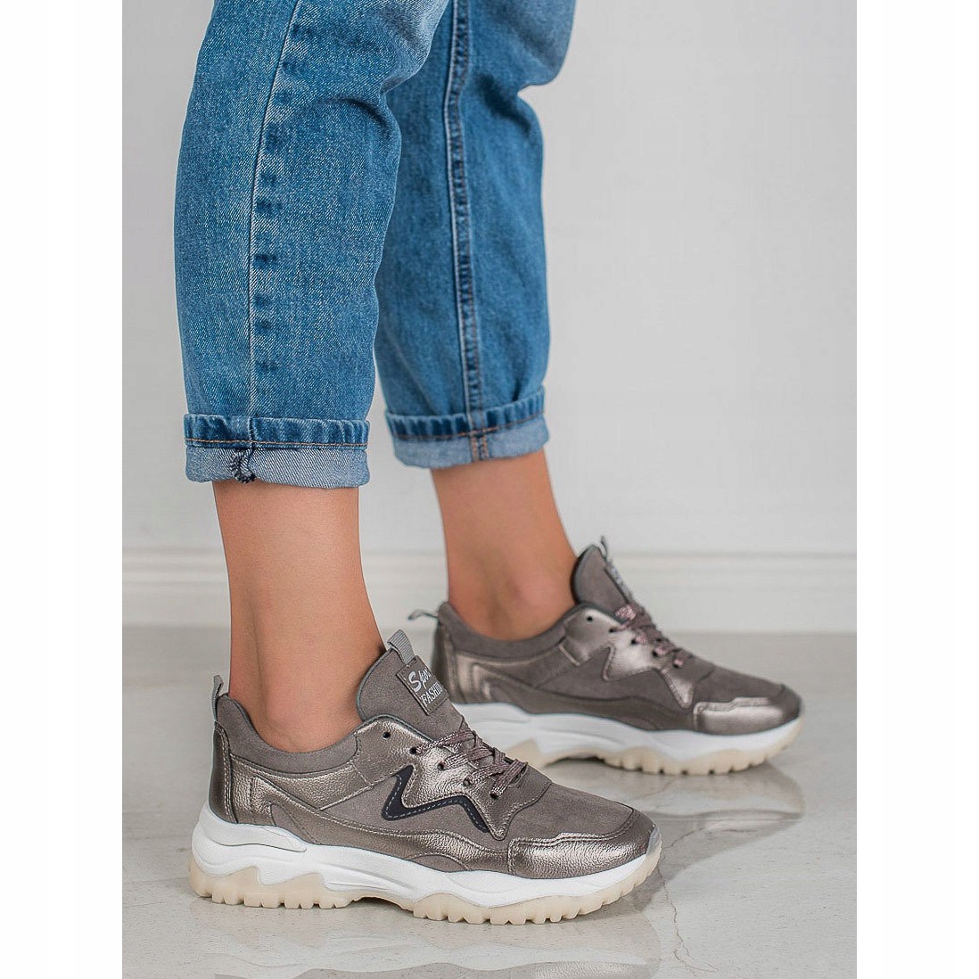 Os calçados são confeccionados com materiais de alta qualidade, o que garante não só um visual atraente, mas também durabilidade. A sua cor cinza é uma proposta universal que se adapta facilmente a vários estilos. Acentos metálicos adicionais e um padrão de brilho conferem-lhes um caráter elegante e moderno.