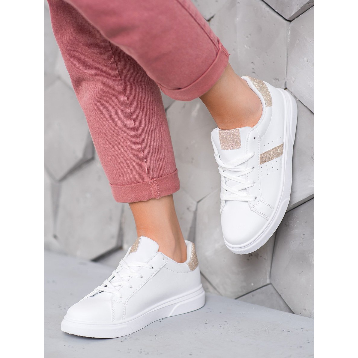 Os sapatos SHELOVET brancos são a escolha perfeita para o uso diário, combinando um estilo casual com toques de moda. O padrão glitter confere-lhes um carácter único, tornando-os um complemento perfeito tanto para looks desportivos como para looks mais elegantes. Graças às suas cores universais, você pode combiná-los livremente com uma variedade de cores e padrões.