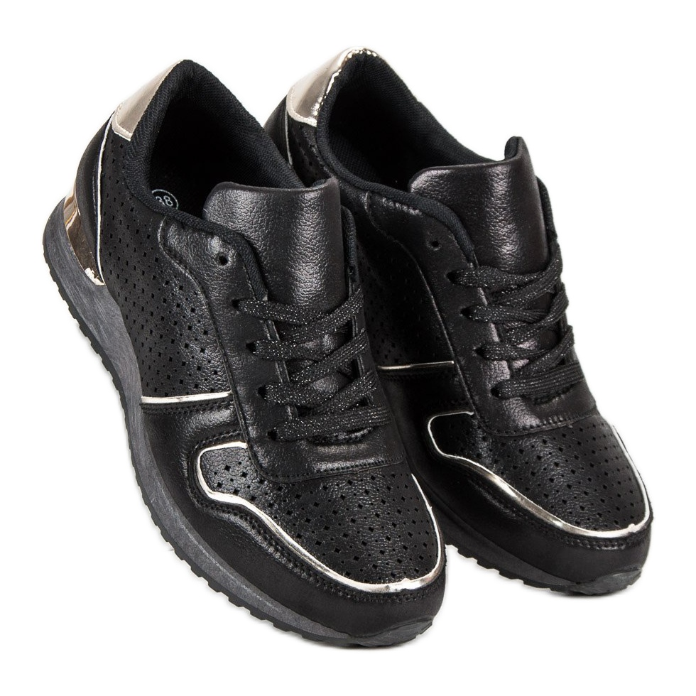 Descubra conforto e estilo em um só, graças aos nossos calçados esportivos pretos confeccionados em couro ecológico vazado. Estes tênis femininos se adaptam perfeitamente ao estilo do dia a dia, combinando funcionalidade com um visual moderno. Graças aos atacadores, você pode ajustá-los perfeitamente ao pé, o que garante conforto mesmo durante um longo dia.
