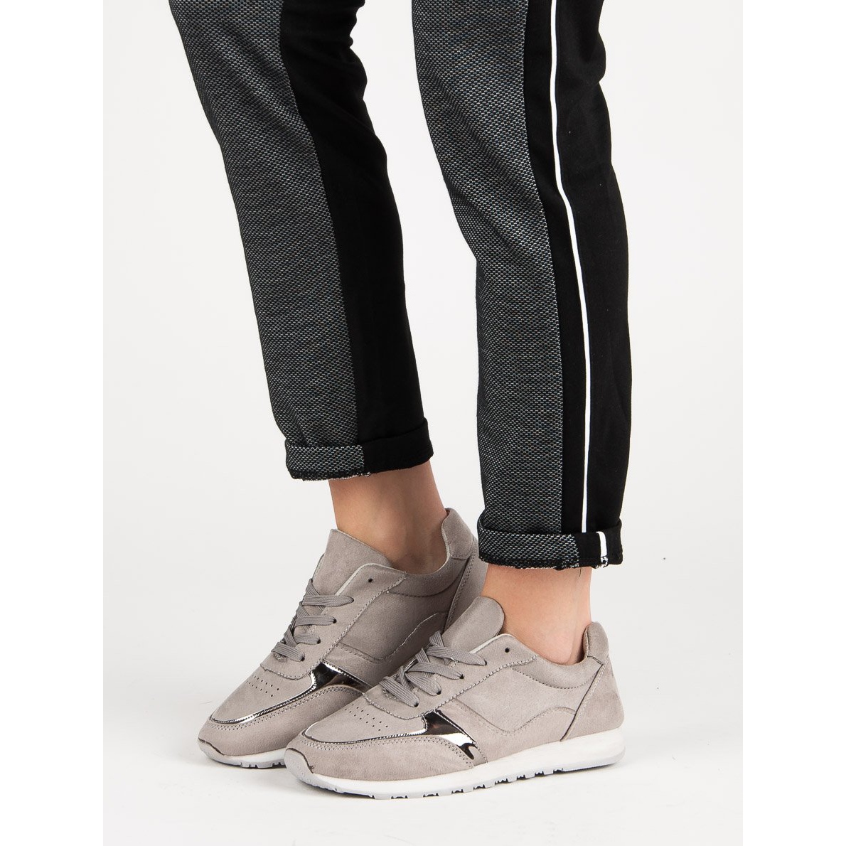 Descubra conforto e estilo com os calçados esportivos Jumex em um elegante tom cinza. Estes calçados femininos exclusivos, confeccionados em camurça ecológica, combinam perfeitamente esportividade com classe, o que os torna a escolha ideal tanto para os passeios do dia a dia quanto para ocasiões mais formais. A aplicação brilhante confere-lhes um charme único, permitindo que você se sinta especial e se destaque na multidão.