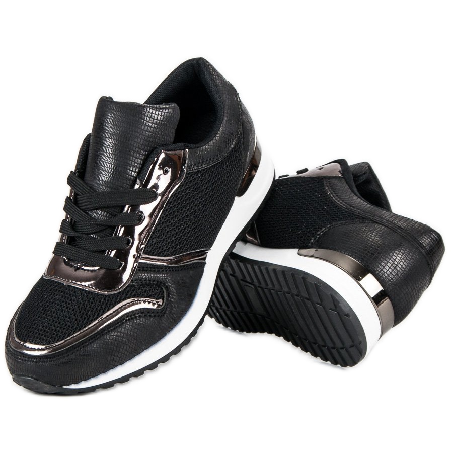 Descubra conforto e estilo com calçados esportivos pretos da moda! Estes tênis femininos são uma combinação de design moderno e soluções práticas que vão atender às expectativas de toda mulher ativa. Confeccionados em material têxtil de alta qualidade, com elegantes inserções em couro ecológico dourado, esses calçados chamam a atenção e conferem personalidade ao estilo do dia a dia.