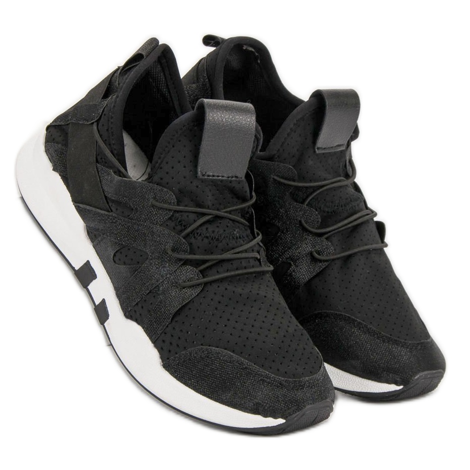 O fecho prático em forma de cadarços facilita a colocação e a retirada dos sapatos de forma rápida e fácil. Estes sapatos pretos universais serão um complemento perfeito para qualquer estilo - combinam perfeitamente com fatos de treino, jeans e vestidos desportivos.