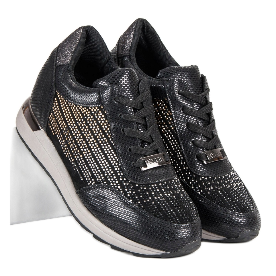Os calçados esportivos da moda Kylie Black se diferenciam pela sola de borracha com banda de rodagem, que garante excelente aderência e estabilidade, independente da atividade. A biqueira redonda acrescenta leveza e elementos adicionais, como strass e strass, conferem aos sapatos um caráter único e uma expressão moderna.