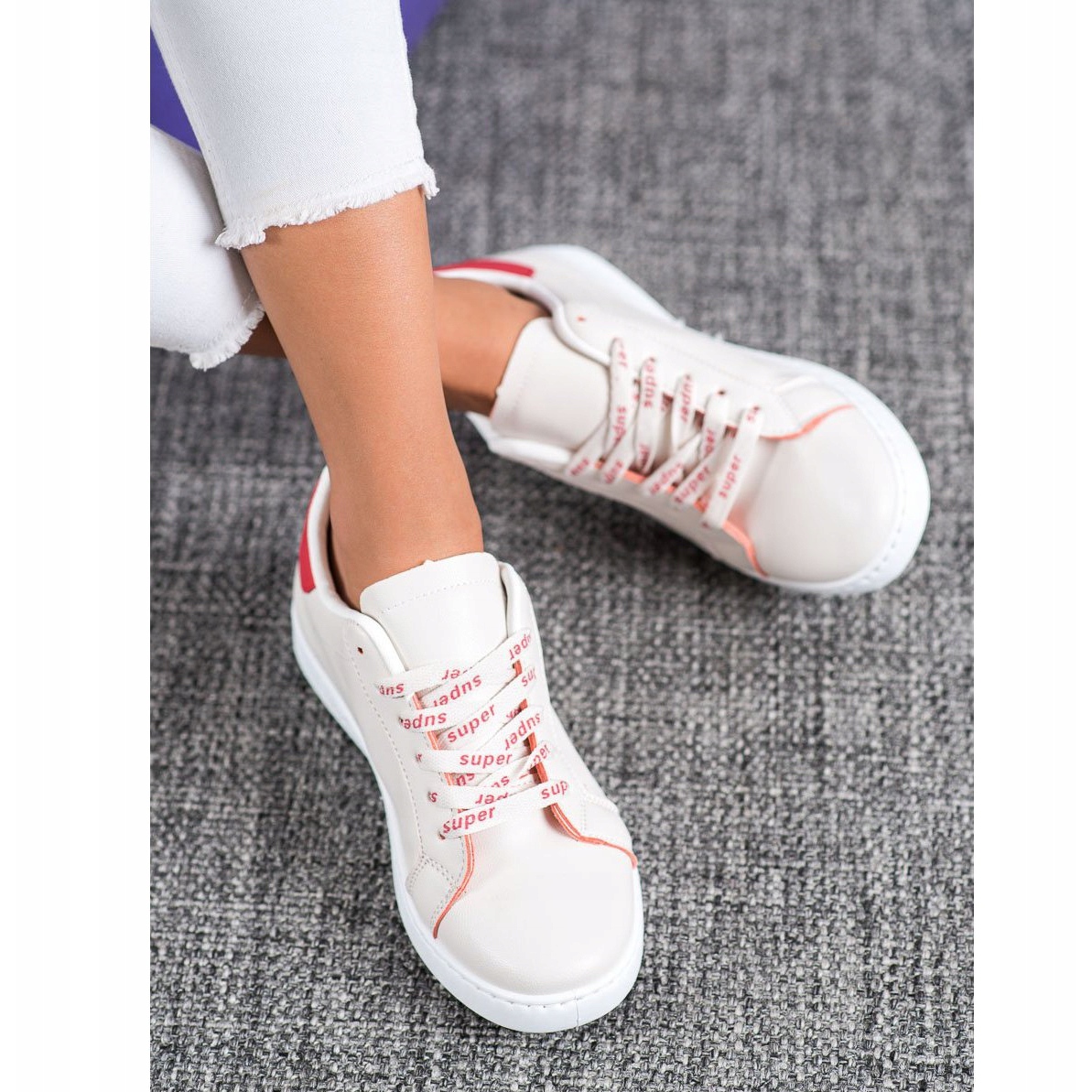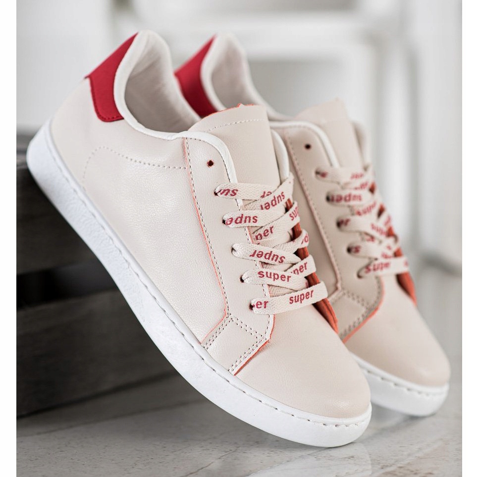 Descubra o estilo e o conforto oferecidos pelos modernos calçados esportivos SHELOVET em uma elegante combinação de branco e vermelho. Estes tênis femininos confeccionados em couro 100% ecológico serão um complemento perfeito para qualquer look casual. Graças à biqueira arredondada e ao salto macio integrado, proporcionam conforto em todas as condições.