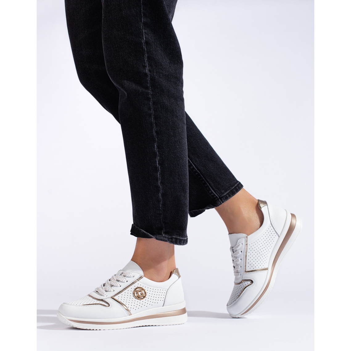 Os calçados esportivos de couro branco, apresentados pela nossa marca única e original, são a quintessência de aliar a elegância ao conforto do uso diário. A singularidade destes sapatos reflecte-se não só na sua cor branca universal, mas também nos detalhes dourados adicionais que acrescentam uma elegância subtil e um carácter moderno a toda a estrutura.