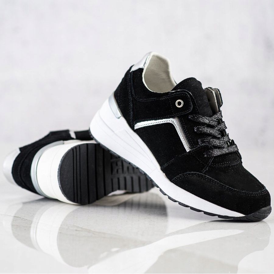 Os Calçados Esportivos de Couro Preto da marca Filippo são a escolha perfeita para mulheres que valorizam a combinação de estilo e conforto. Estes sapatos elegantes, confeccionados em couro natural de alta qualidade, destacam-se dos demais modelos. Caracterizam-se por uma cunha de 5,5 cm, que não só acrescenta estilo, mas também alonga opticamente as pernas.