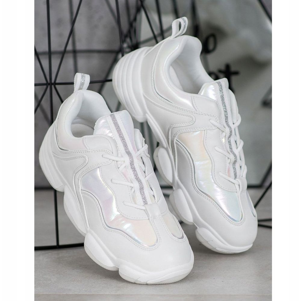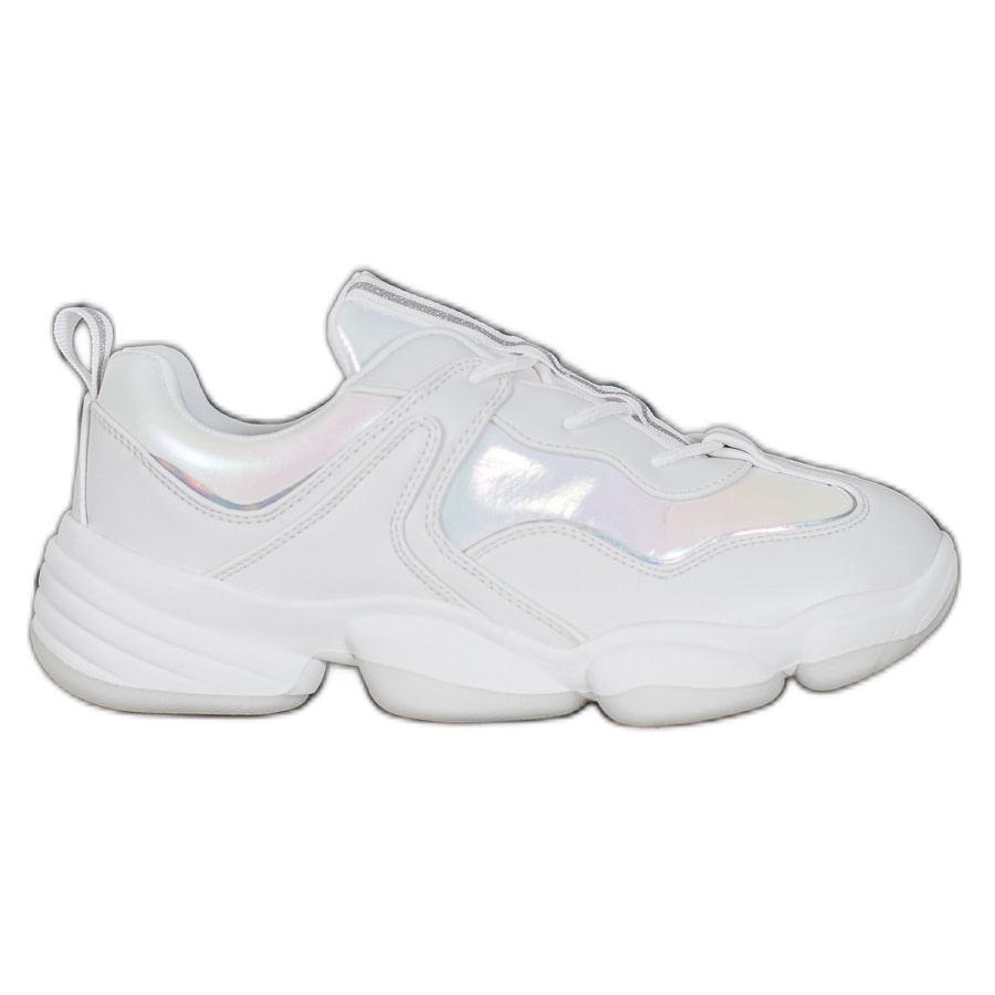 Apresentamos elegantes calçados esportivos Kylie em uma elegante cor branca, que combinam conforto e design moderno. Estes sapatos femininos são a escolha perfeita para mulheres que valorizam um look moderno e conforto no dia a dia. Distinguem-se pelas inserções originais e brilhantes na parte superior, que lhes conferem um carácter único.