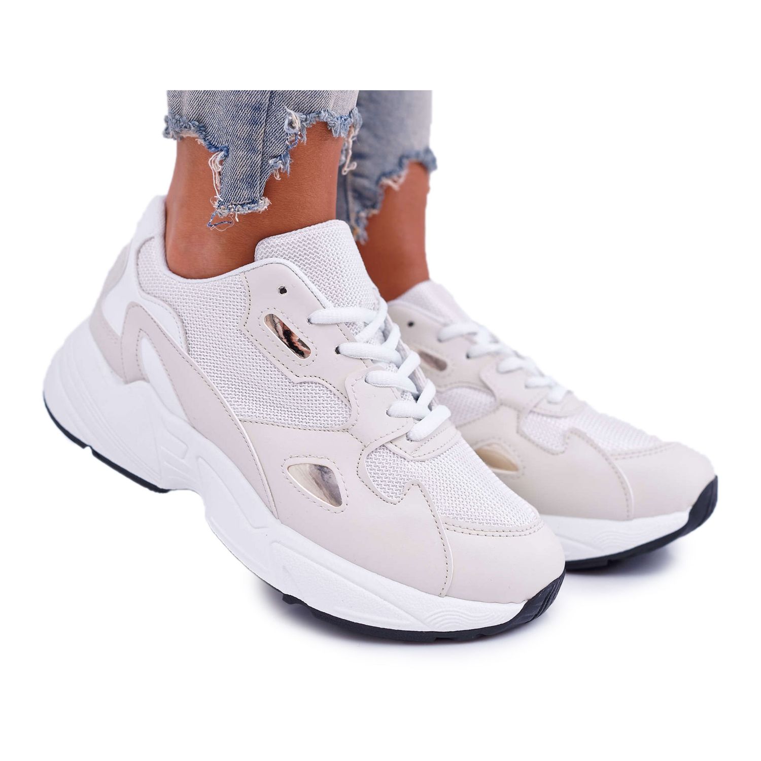 Detalhes: FRJ Calçados Esportivos Femininos Branco Bege Szantal marrom