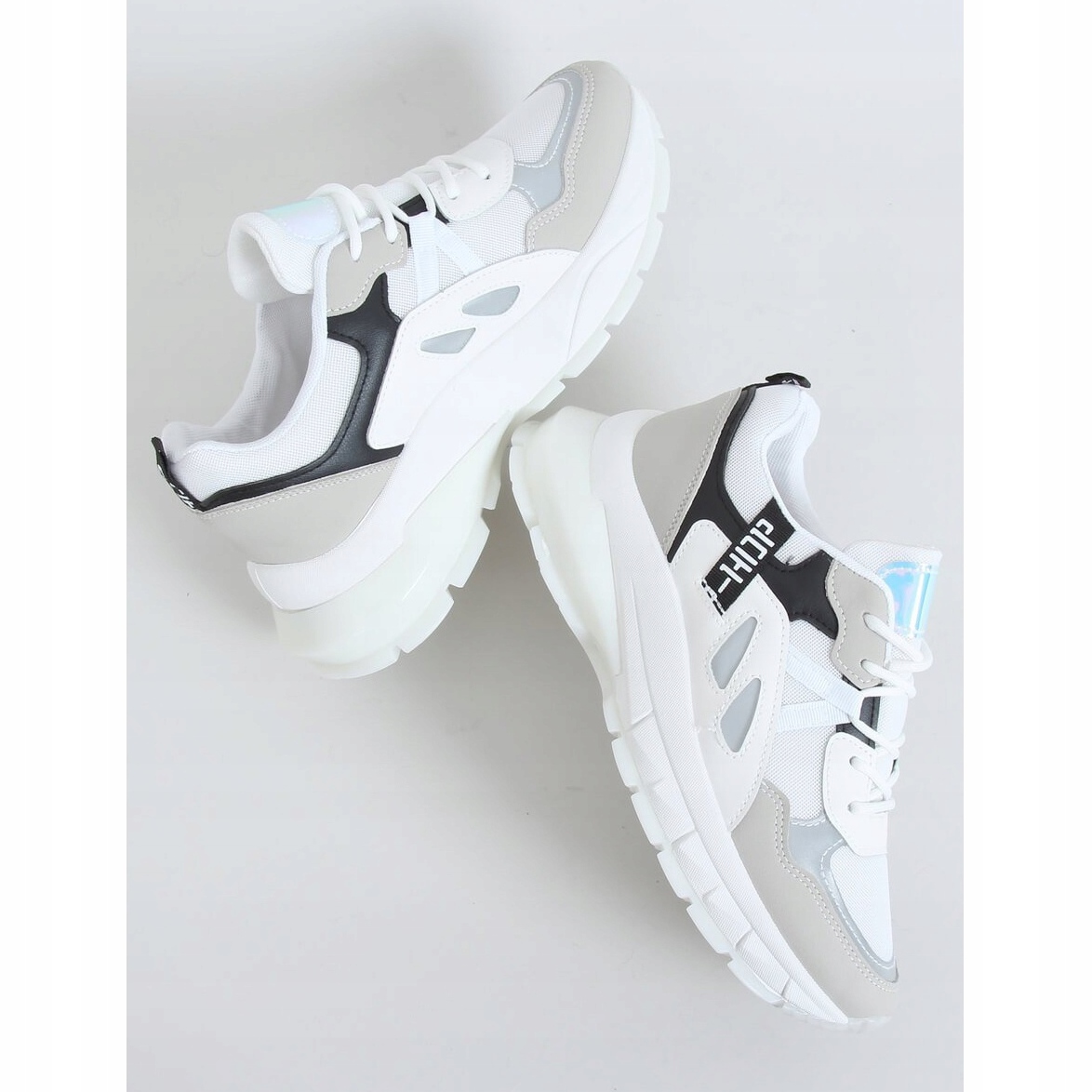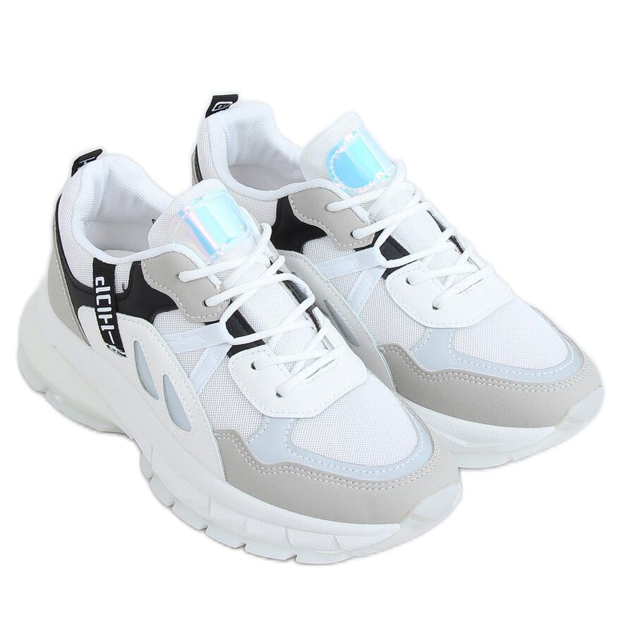 A principal característica dos calçados B0-553 WHITE/BLACK é sua sola maciça, mas leve, feita de material sintético, que proporciona excelente amortecimento e estabilidade a cada passo. O elegante design vazado e a combinação da cor branca dos sapatos com elementos multicoloridos e holográficos tornam-nos uma escolha atraente para mulheres que valorizam um look moderno e dinâmico.