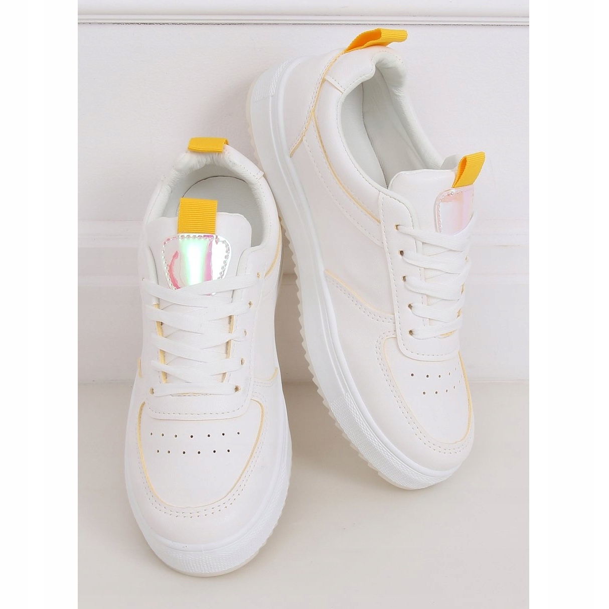 Detalhes: Calçados esportivos femininos brancos KK-203 BRANCO / AMARELO