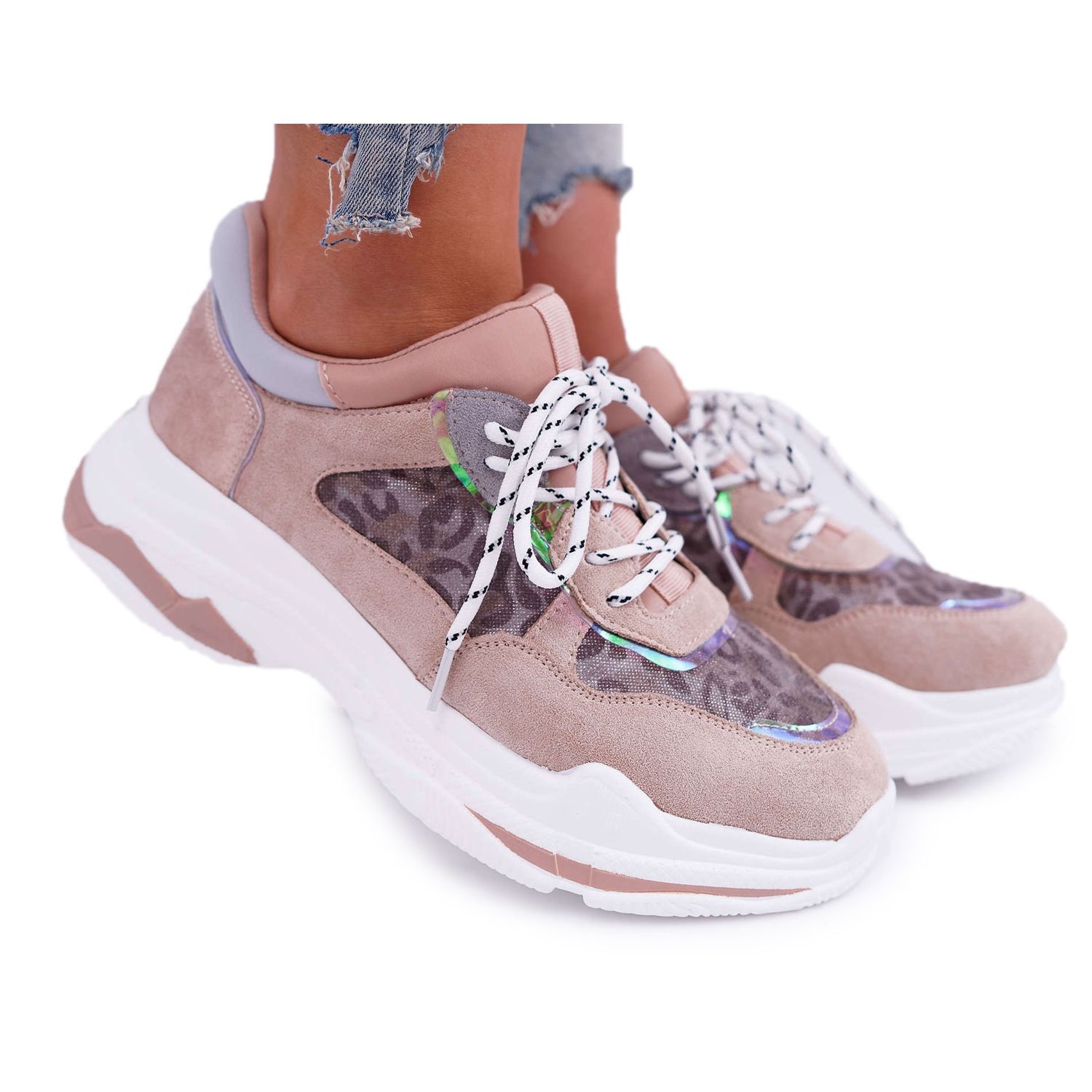 Esses calçados leves e baixos têm sola de 4,5 cm de altura, o que garante amortecimento adequado nas atividades do dia a dia. A altura superior é de 7 cm, o que enfatiza ainda mais o caráter moderno do calçado. A ponta redonda acrescenta sutileza e o fecho em renda permite um ajuste perfeito ao pé.