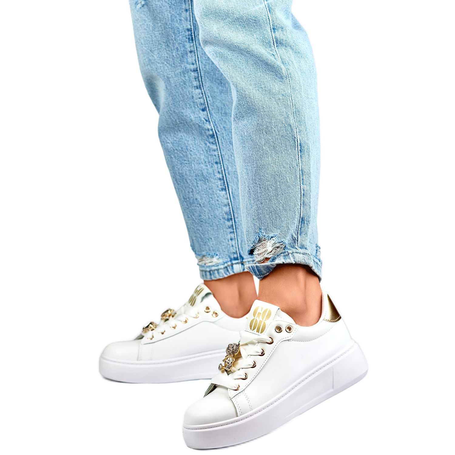 Detalhes: Calçados esportivos femininos com ursinho de pelúcia EV392-1GO, branco