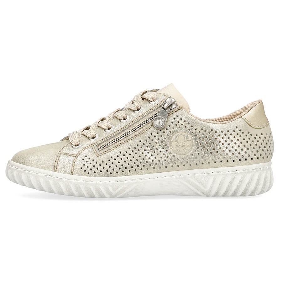 Detalhes: Calçados esportivos femininos confortáveis de couro, brilhante, bege Rieker N0901-62