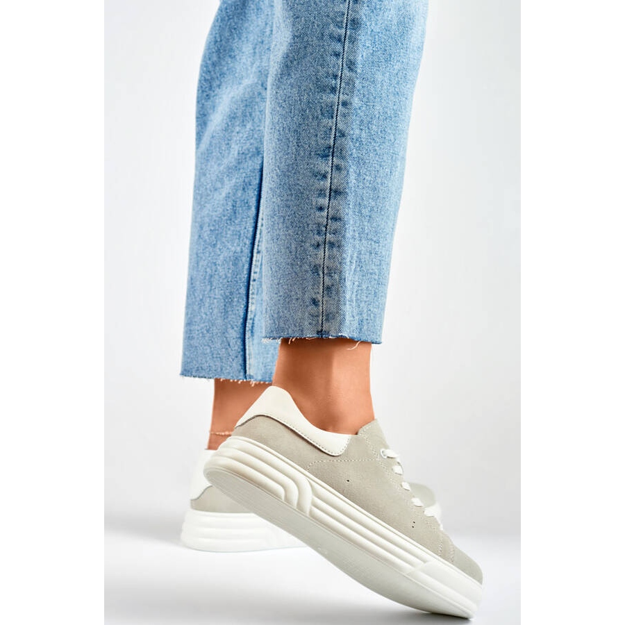Esses sapatos esportivos se misturam bem com várias estilizações, de jeans, através de leggings e saias esportivas. A cor cinza garante a versatilidade, para que você possa usá -la diariamente e durante a atividade física.