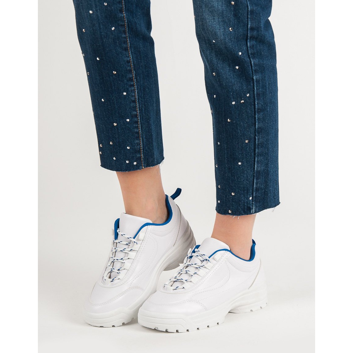 Estes sapatos, brancos com elementos em azul marinho, criam uma composição única que certamente chamará a atenção. Perfeitos para a primavera, verão, outono e inverno, serão uma ótima opção para todos os dias. Materiais de alta qualidade, como sola sintética e palmilha em tecido, garantem durabilidade e conforto de uso.