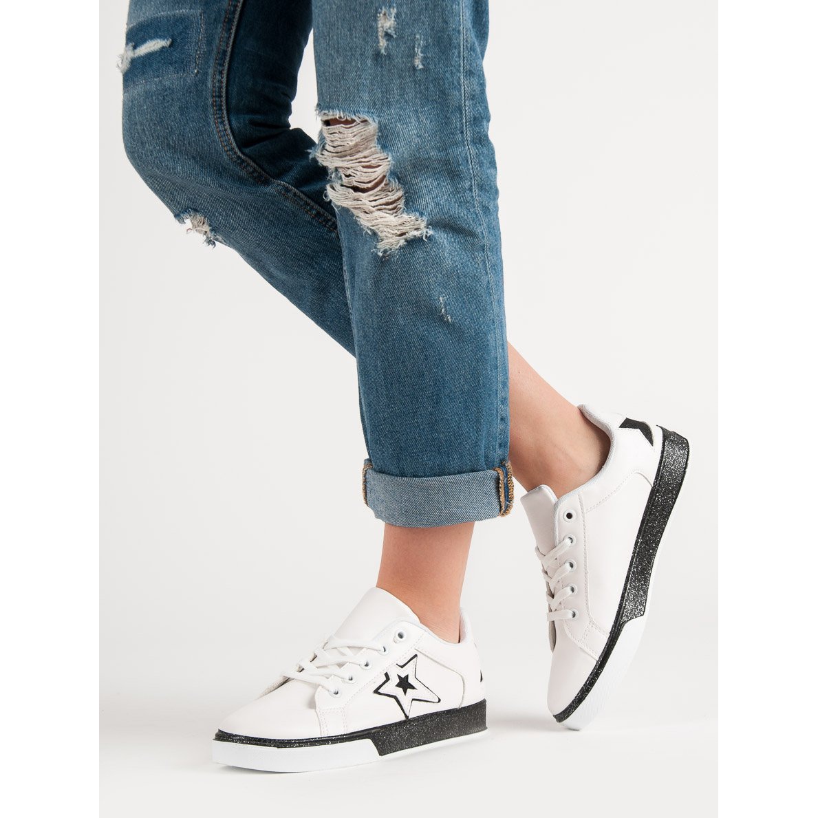 Detalhes: Calçados esportivos femininos branco preto