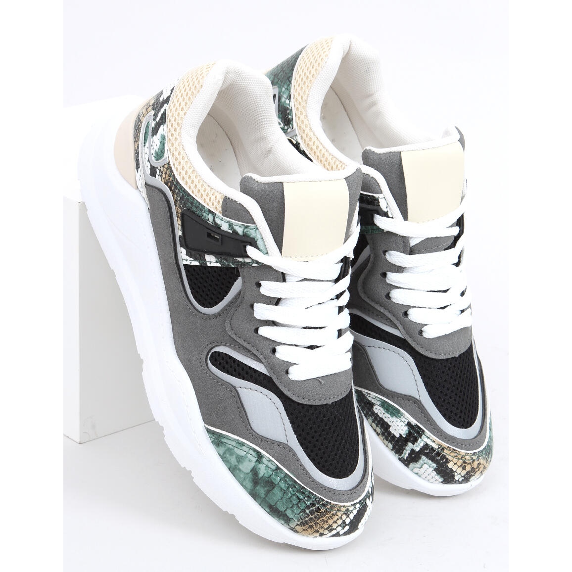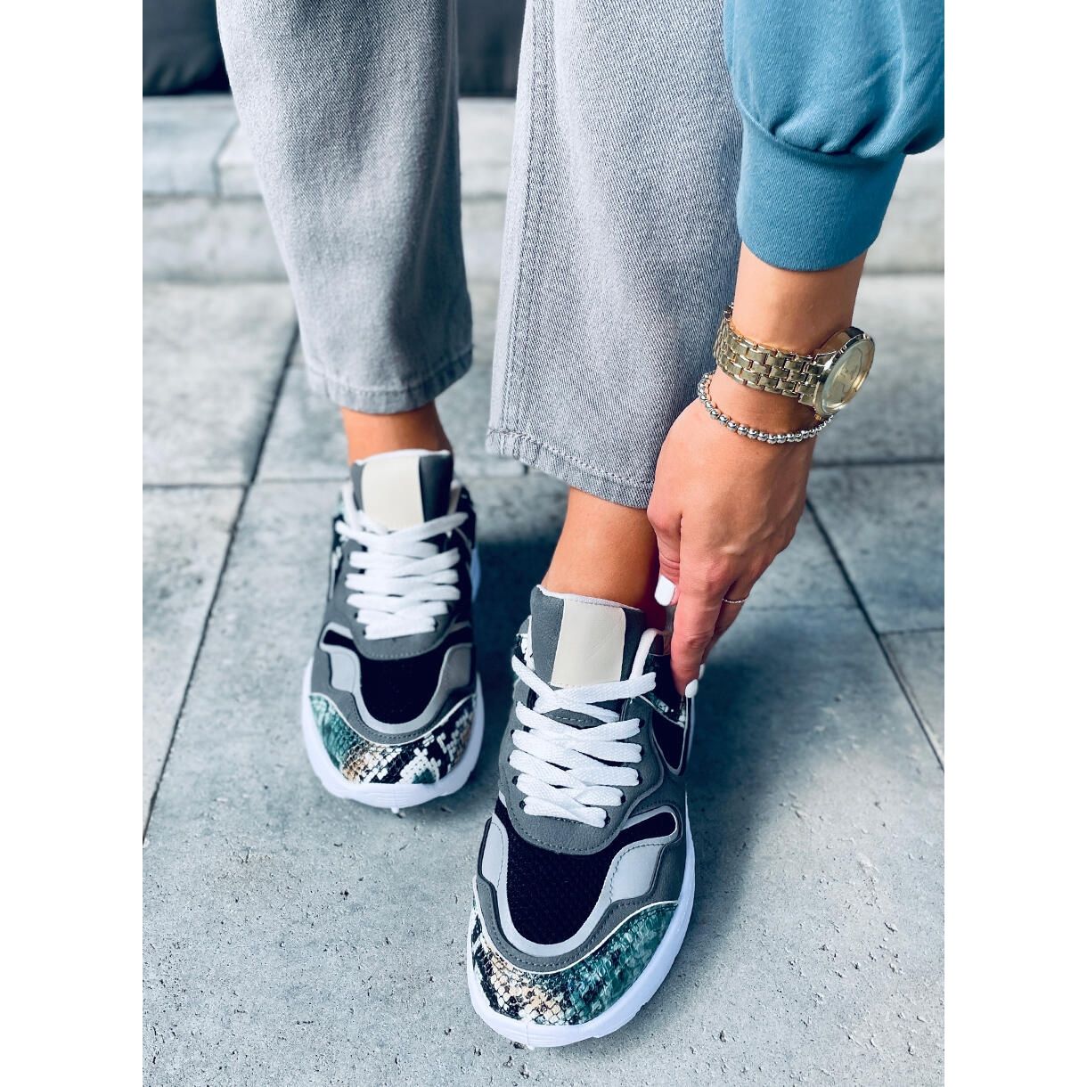 Este modelo impressiona não só pelo seu design único, mas também pela alta qualidade de acabamento. Inserções atraentes com motivos de pele de cobra e elementos de malha farão de cada passo uma declaração de moda. O interior do calçado é forrado com tecido macio, o que aumenta o conforto de uso, e a sola plana de 3 cm de altura é perfeita para longas caminhadas ou treinos intensos.