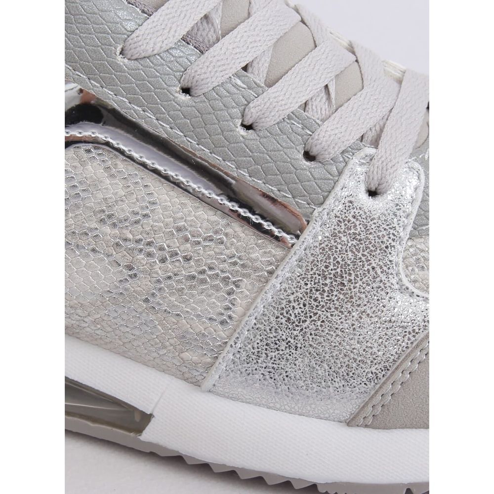 Descubra estilo e conforto extraordinários com calçados esportivos femininos prateados BL206 Silver. Estes tênis com cadarços são a combinação perfeita entre clássicos e tendências modernas que certamente chamarão a atenção. Distinguem-se por uma sola translúcida e inserções metálicas da moda e uma textura que lembra pele de cobra, o que os torna um sucesso absoluto em qualquer guarda-roupa.
