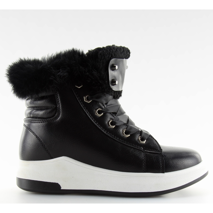 Os elegantes calçados esportivos pretos KB-039 são a combinação perfeita de estilo urbano e conforto para os dias frios. Atados com uma fita de cetim, decorados com pele no tornozelo e um elegante encaixe com tachas na língua, chamam a atenção e conferem ao conjunto um caráter original. Os calçados são totalmente isolados com pêlo grosso, o que os torna perfeitos para quem valoriza aconchego e conforto.