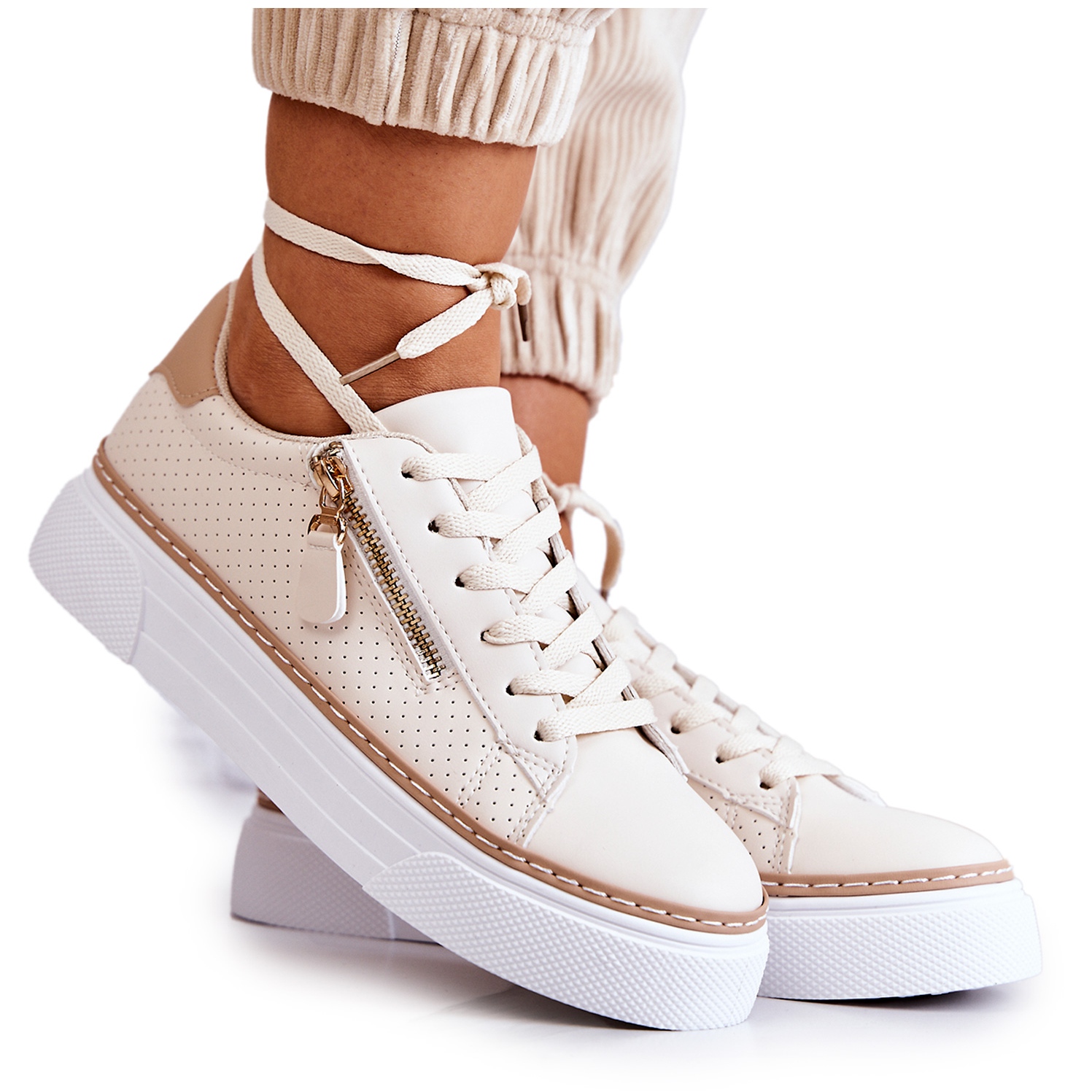 Descubra moda e conforto em um dos últimos modelos da FB2 - calçado esportivo plataforma na elegante cor bege! Feitos em couro ecológico de alta qualidade, esses sapatos femininos combinam estilo com funcionalidade. Sua delicada plataforma, de 3 cm de altura, levanta sutilmente a figura, conferindo leveza a qualquer look.