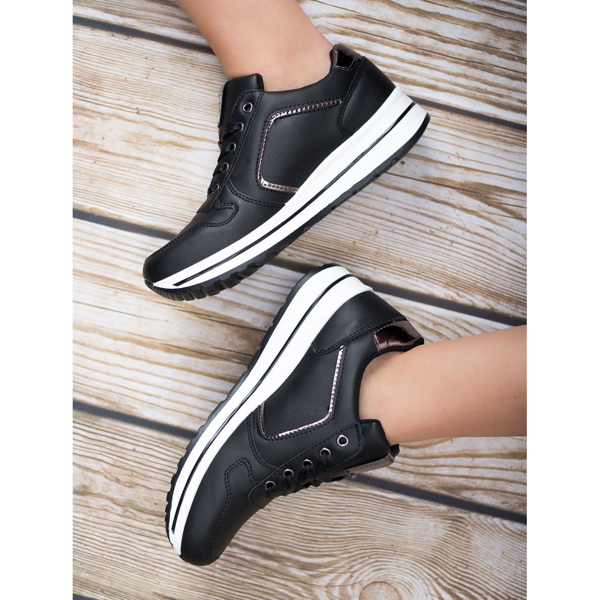 Apresentamos fantásticos calçados esportivos pretos da marca SHELOVET, que são uma proposta perfeita para mulheres ativas que desejam aliar conforto a um look fashion. Estes sapatos pretos universais adaptam-se perfeitamente a vários estilos, tanto no dia a dia como nas idas ao ginásio.