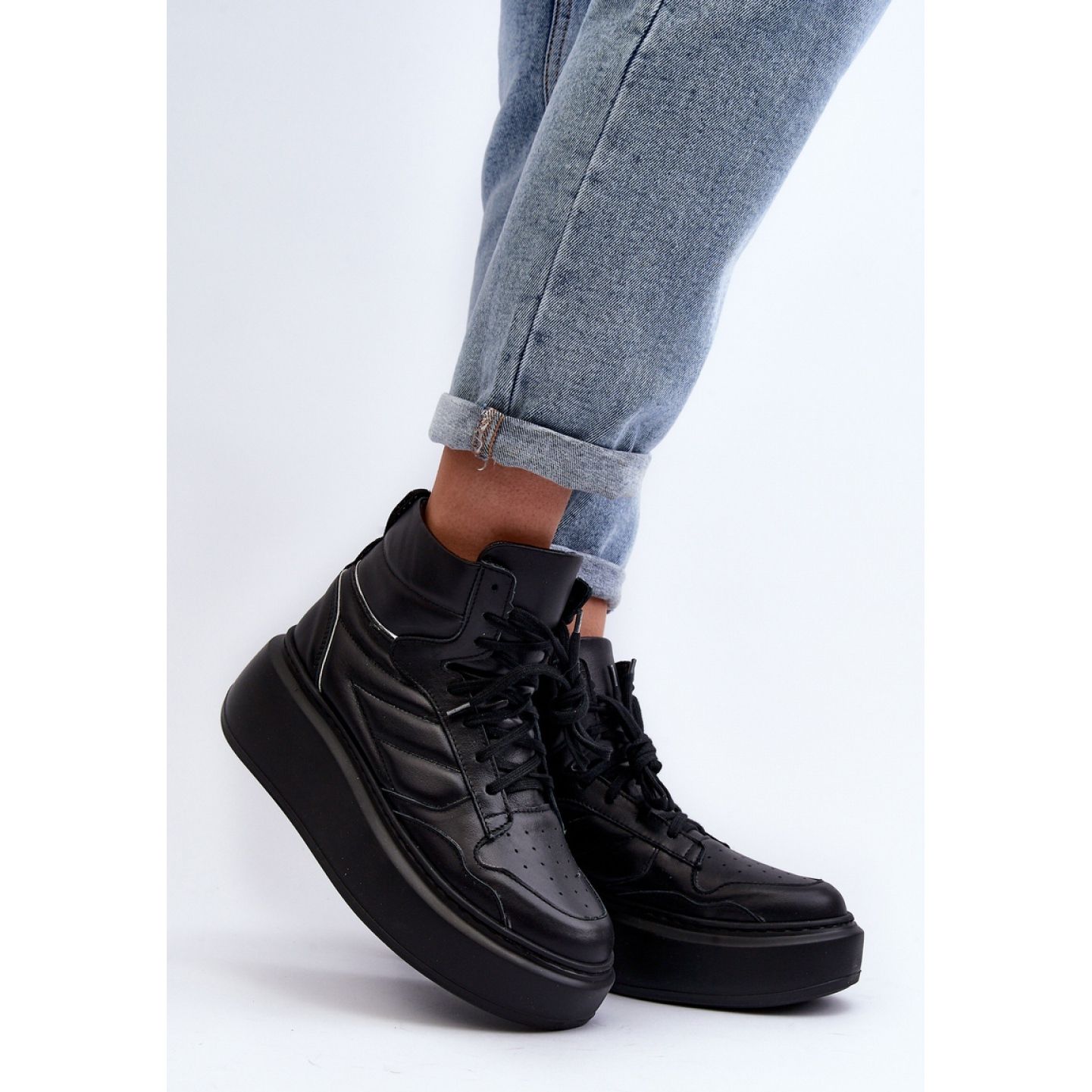 Graças à altura do calcanhar de 7 cm, o modelo combina estilo esportivo e elegância feminina, o que a torna a escolha perfeita para viagens diárias, passeios ou reuniões com amigos. O calçado está disponível em uma cor preta atemporal que adicionará estilo a qualquer estilo.