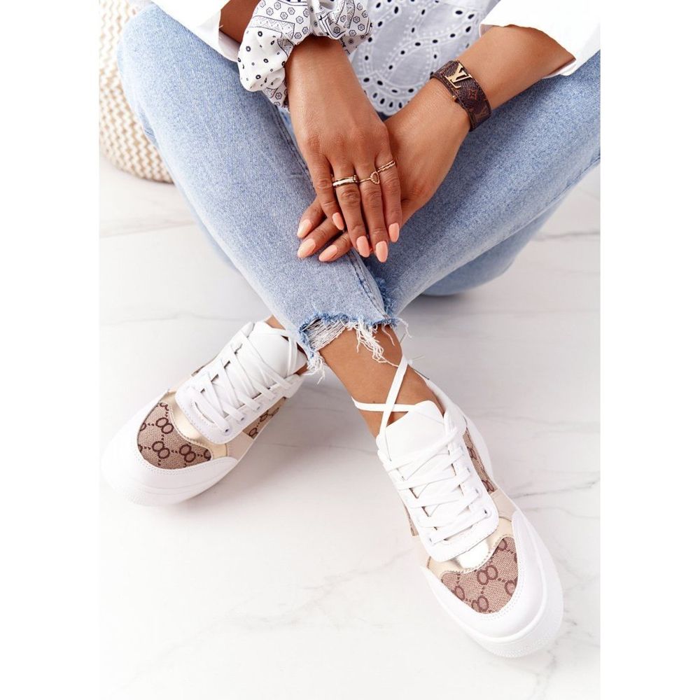 Detalhes: Calçados esportivos Tênis na plataforma branco e dourado Allisone