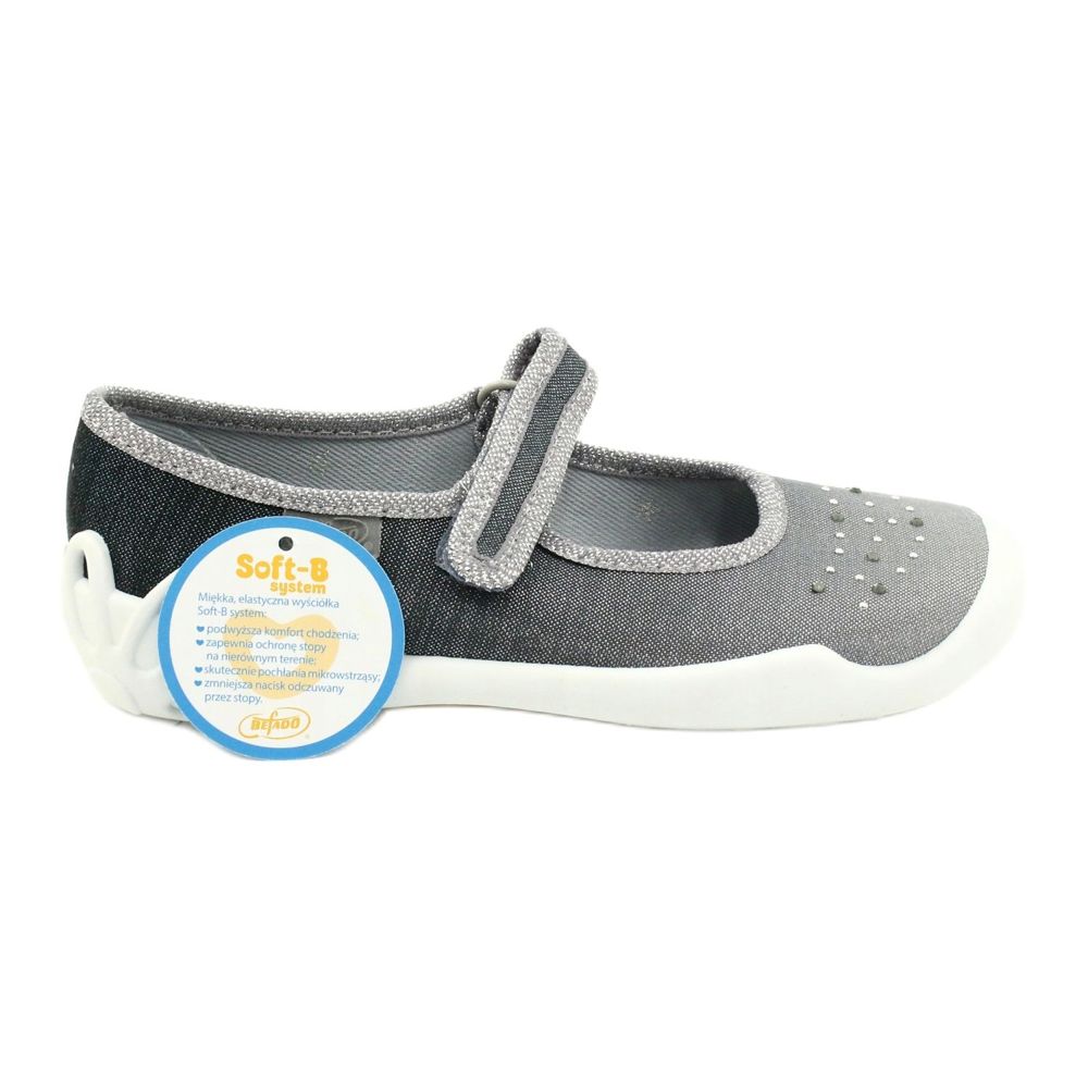 Apresentamos o calçado infantil exclusivo Befado 114Y315 na cor cinza prateado, que é perfeito como troca de calçado para a escola. Graças à utilização de tecidos de algodão respiráveis, estes calçados garantem excelente higiene e conforto de uso, o que é extremamente importante no dia a dia das crianças.