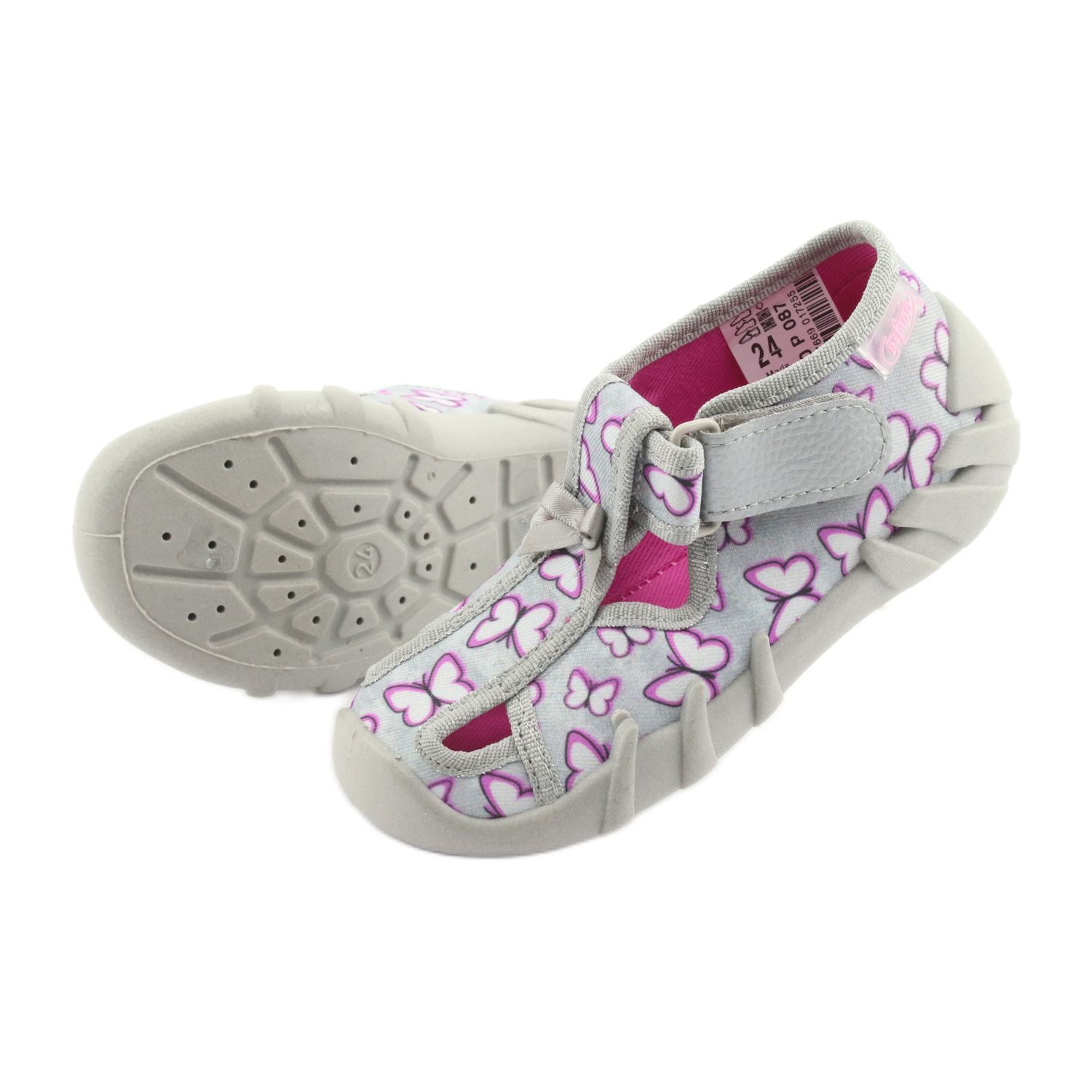 O modelo 190P087 também se distingue por uma biqueira larga que permite a livre movimentação dos dedos, garantindo não só conforto, mas também um desenvolvimento saudável do pé. Os sapatos com velcro são uma solução prática que facilita calçar e tirar o calçado, mesmo para as crianças pequenas.