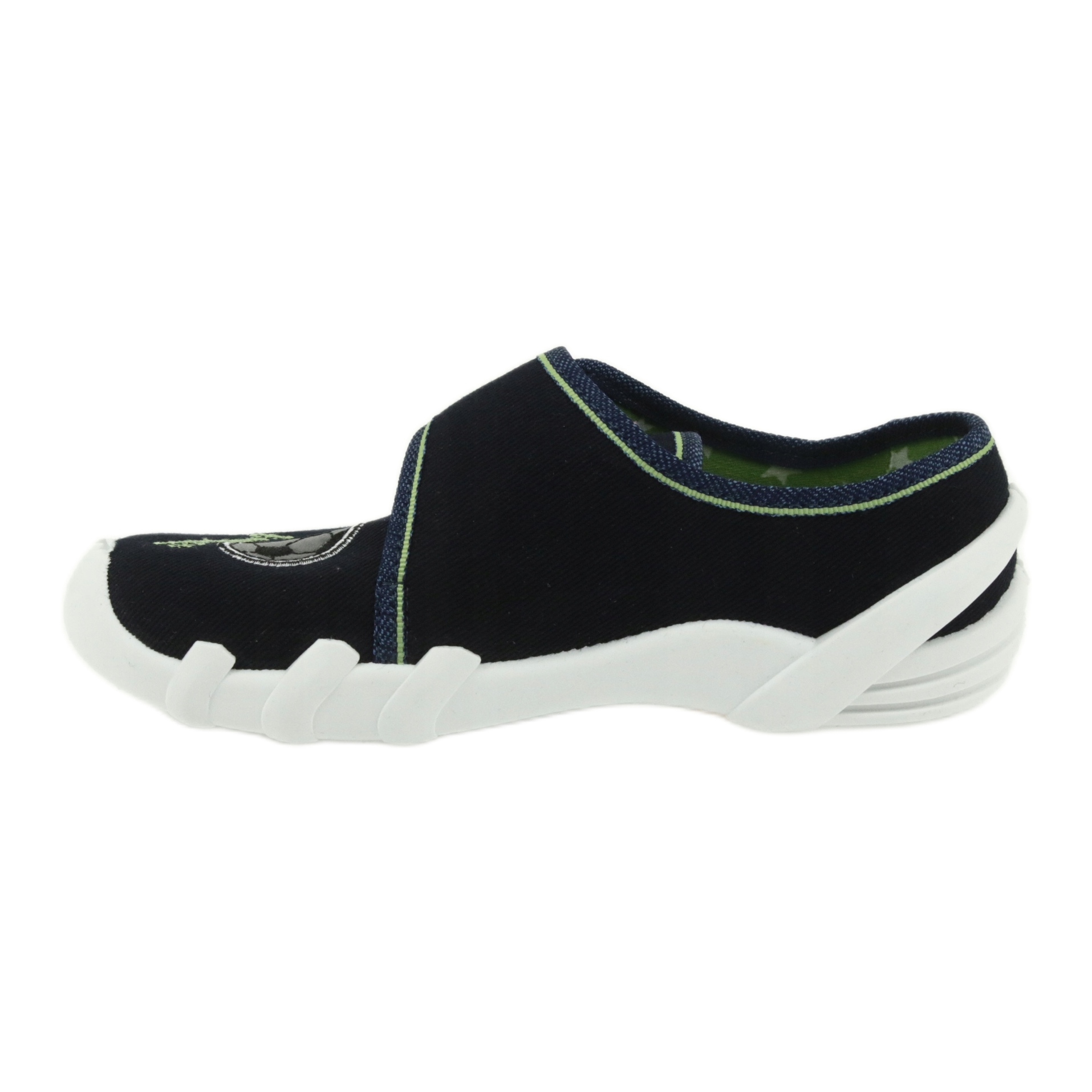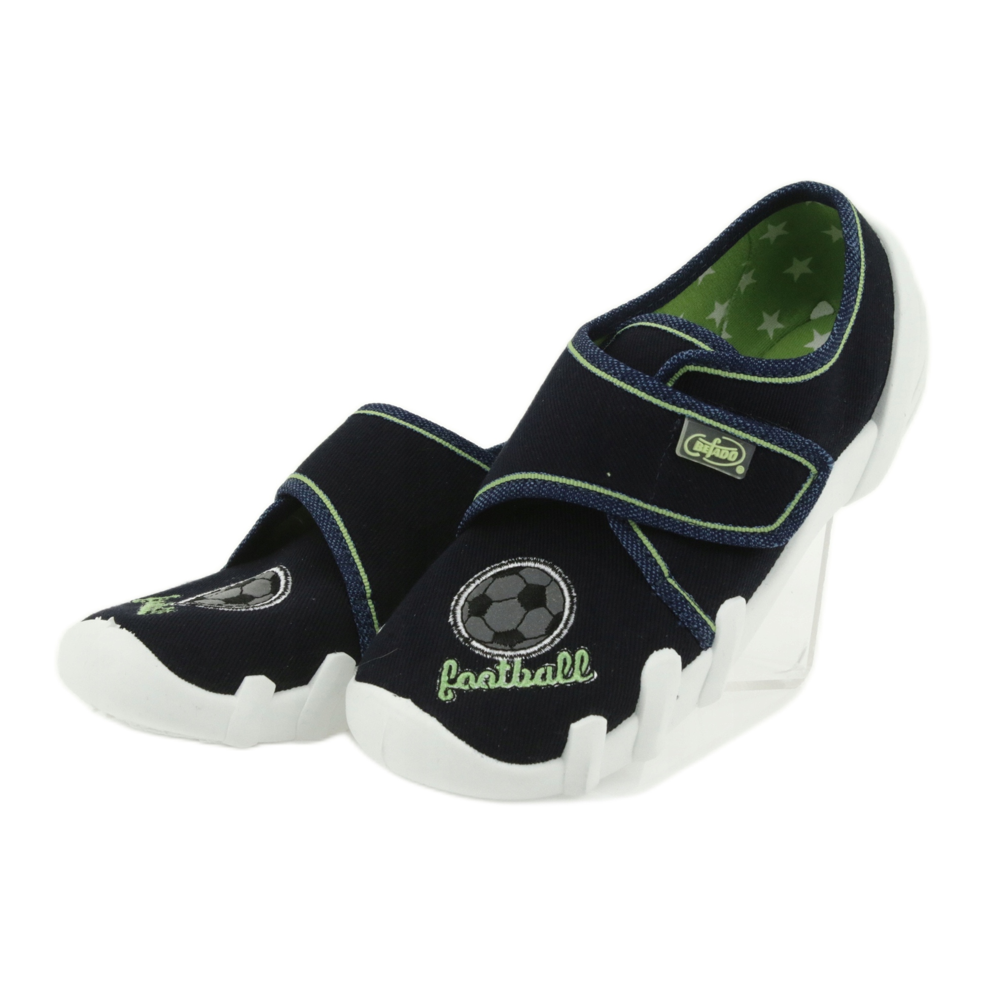Os calçados infantis Befado também se diferenciam pelo design estético nas cores azul marinho e verde, que vai agradar a muitos meninos. Elementos adicionais, como o calcanhar rígido e o "Sinal de Pé Saudável", enfatizam a qualidade e funcionalidade deste modelo.