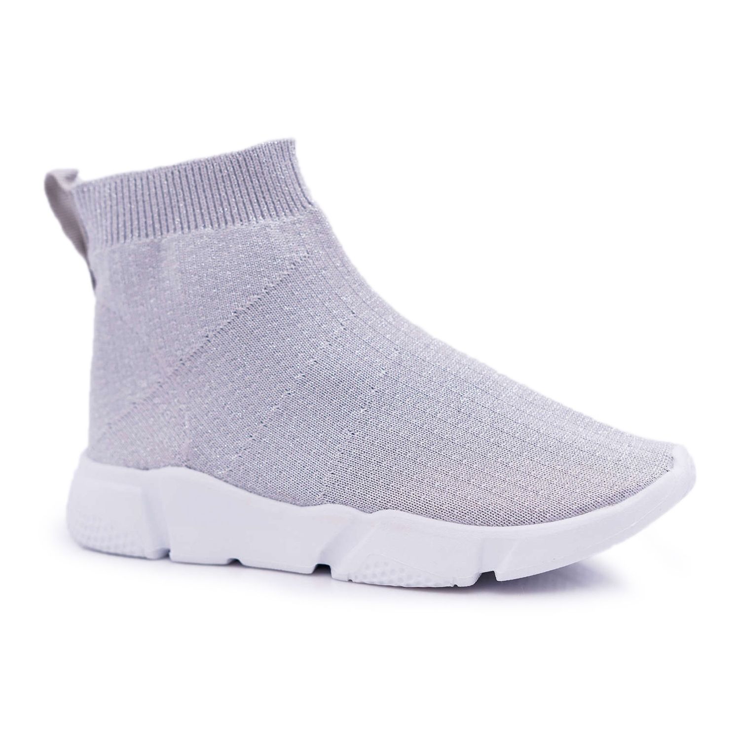 Detalhes: FRROCK Calçados infantis esportivos juvenis de brocado prata Deva cinza