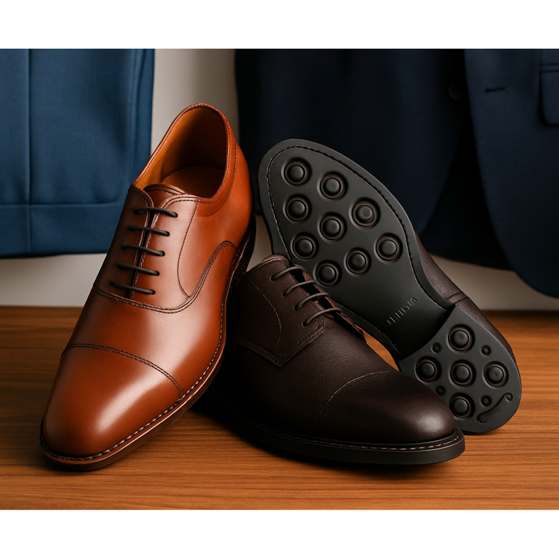 - Sola de couro — elegante, mas escorregadio e pouco durável na chuva.