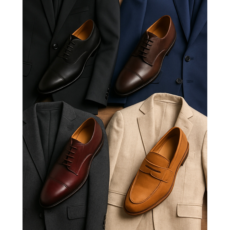 Terno preto → Oxfords pretos (sempre), marrons SOMENTE se ambiente muito casual.
