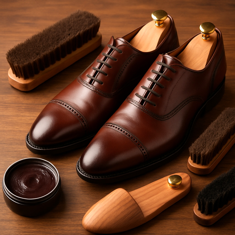Creme para sapatos na cor certa. Esfregue e dê polimento até ficar brilhante.
