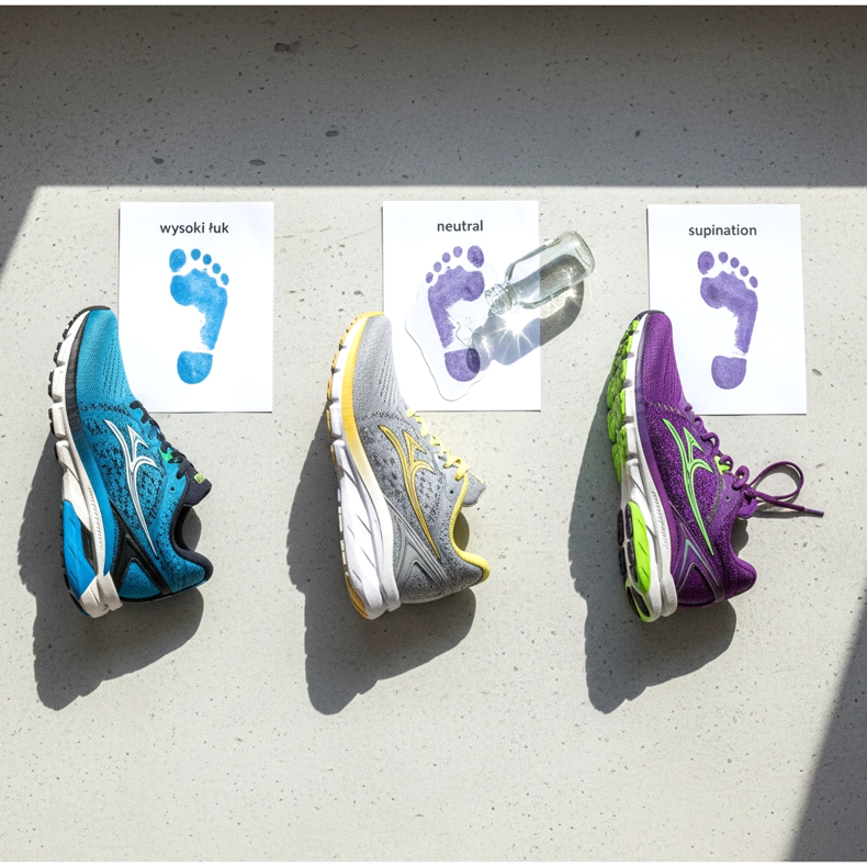 O tipo do seu pé é outro fator importante. Existem três tipos principais de pés: neutro (arco baixo), pronador (arco alto) e supinação (arco muito alto). Se você tem pés pronados, precisa de calçados com apoio adicional na parte interna (medial). Se você supinar, precisará de sapatos mais flexíveis. Para pés neutros, a maioria dos calçados esportivos padrão deve funcionar bem. Para determinar o seu tipo de pé, você pode enviar uma foto do seu pé andando molhado no papel - você verá o formato da impressão. Alternativamente, uma visita a uma loja especializada em desporto onde possam analisar a sua marcha vale realmente o investimento.