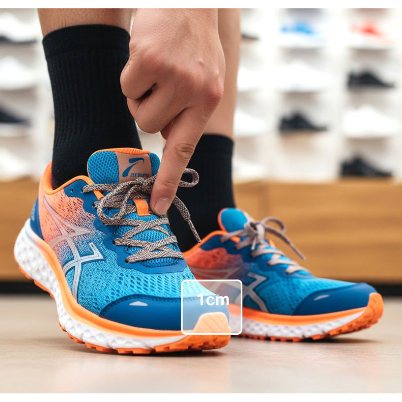 Muitas lesões esportivas resultam de tamanhos de calçados incompatíveis. Sapatos muito apertados podem causar bolhas e unhas encravadas, enquanto sapatos muito largos podem causar bolhas e instabilidade. A regra geral é: deve haver um espaço da largura de um dedo (cerca de 1 cm) entre a ponta do sapato e o dedão do pé. Os sapatos devem ser bem cuidados depois de muito uso - compre-os no final do dia, quando os pés estiverem ligeiramente inchados. Lembre-se de que os tamanhos dos sapatos podem variar entre as marcas, por isso experimente-os sempre antes de comprar.