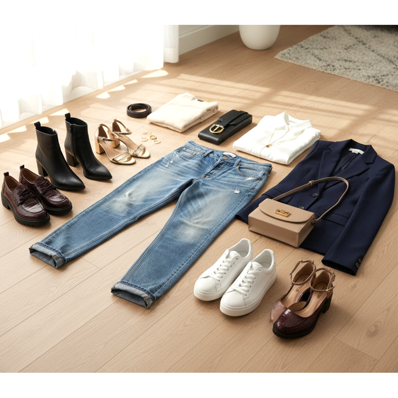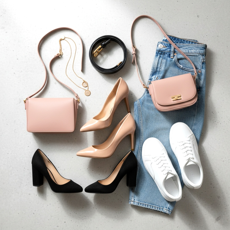 Sapatos em cores neutras – preto, bege ou marrom – também são uma solução segura. Essas cores combinam com a maioria dos estilos e funcionam bem tanto no escritório quanto no dia a dia.