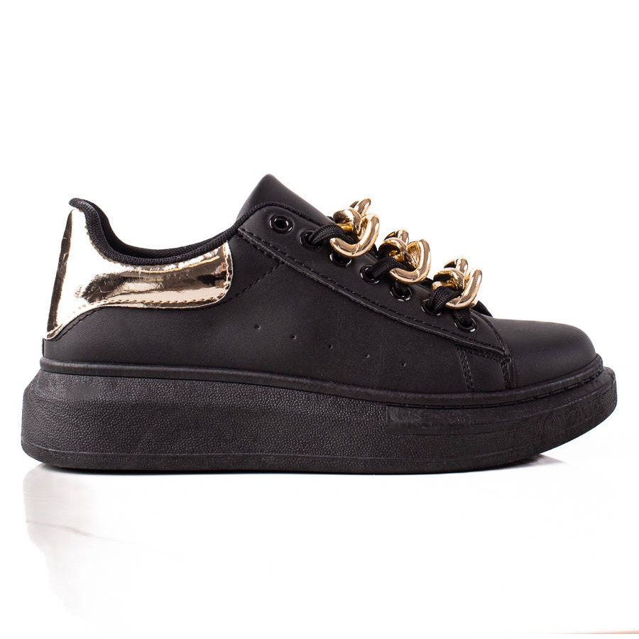 Descubra estilo e conforto extraordinários nos tênis da moda TRENDI com corrente na elegante cor preta. Estes calçados esportivos femininos são a combinação perfeita entre funcionalidade e as últimas tendências da moda. Fabricados em imitação de couro de alta qualidade, oferecem estética e durabilidade. Um contraforte macio e embutido no calcanhar e uma sola de borracha com banda de rodagem garantem conforto no uso diário, independentemente da estação.