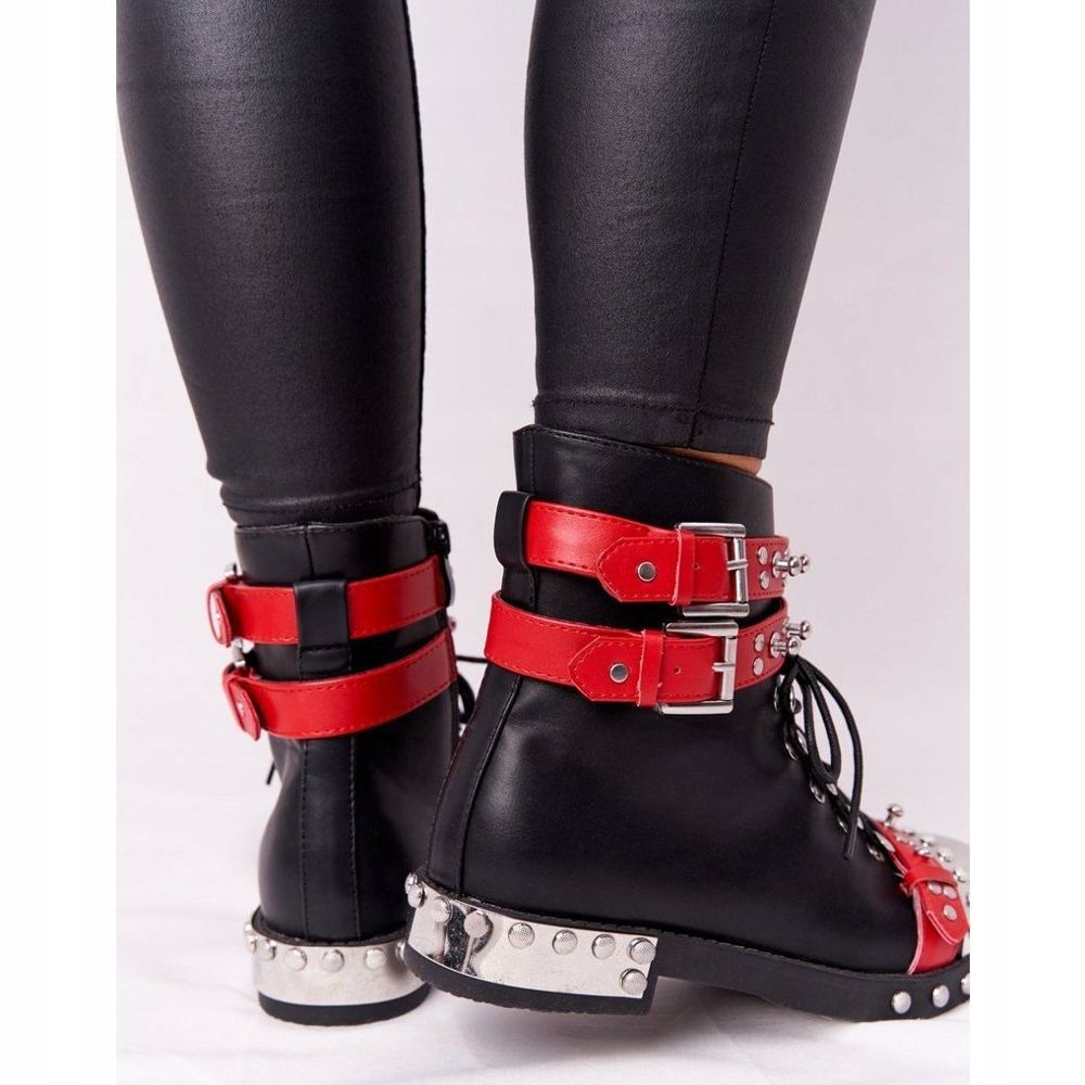 Descubra estilo e conforto únicos com botas femininas com isolamento e strass da marca Lu Boo. Estes botins pretos e vermelhos são o complemento perfeito para qualquer look da moda, especialmente no estilo glam rock ou grunge. Confeccionados em couro ecológico de alta qualidade, oferecem não só um visual moderno, mas também conforto graças ao isolamento em forma de manta para calçados.