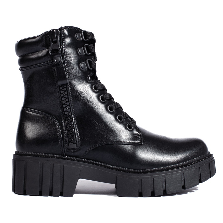 Trabalhadores negros elegantes e resistentes - uma combinação perfeita de estilo casual e rock. Feito de couro orgânico, com aquecimento e uma sola estável com um piso, eles trabalharão em dias mais frios, adicionando caráter às estilizações cotidianas e mais expressivas.