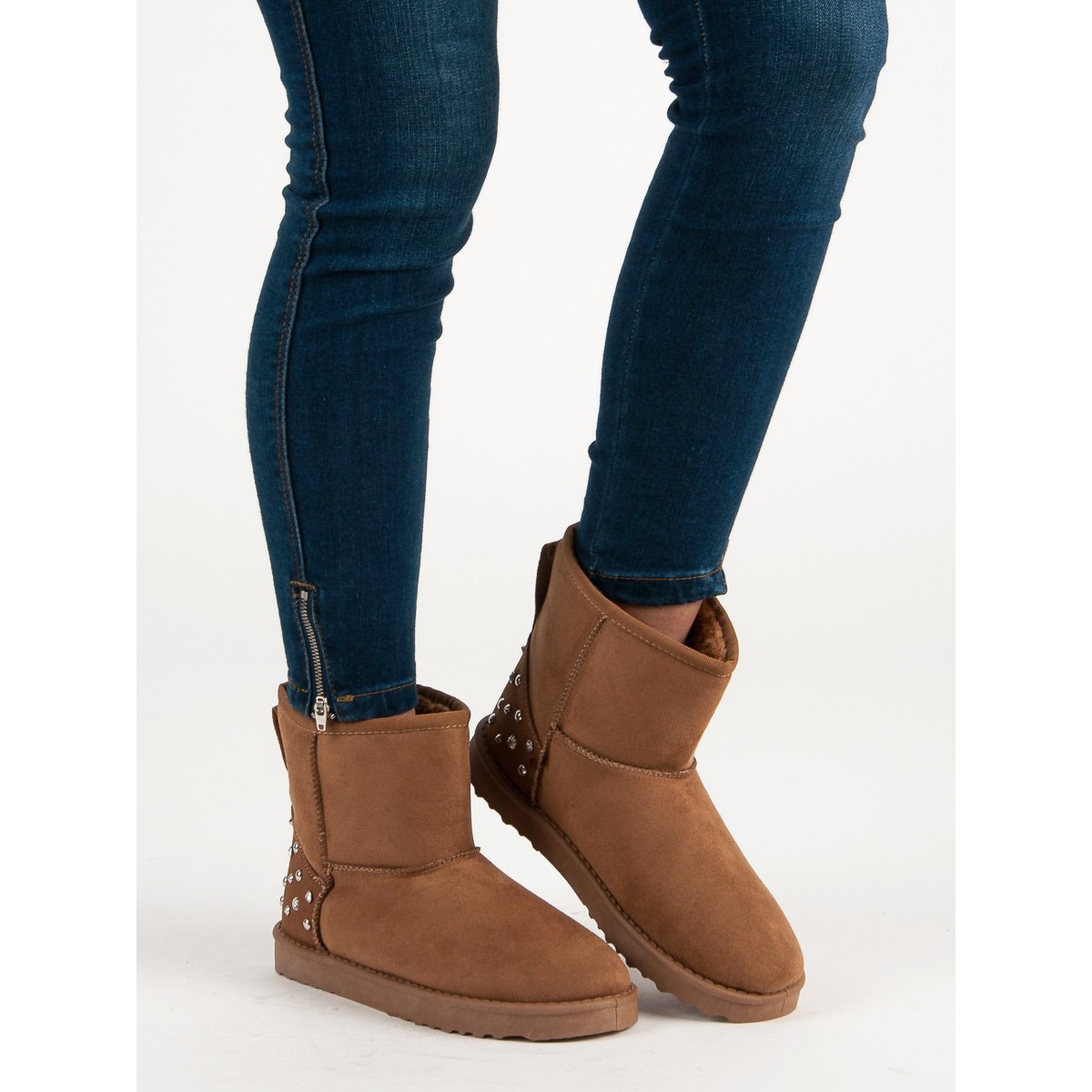 Camel Mukluks com strass na cor marrom são a escolha perfeita para mulheres que valorizam estilo e conforto em condições climáticas difíceis. Estas botas altas de neve foram desenhadas a pensar nos meses de inverno, proporcionando um excelente isolamento térmico e proteção contra o frio. Feitos de camurça ecológica e material têxtil, eles não são apenas duráveis, mas também elegantes na aparência.